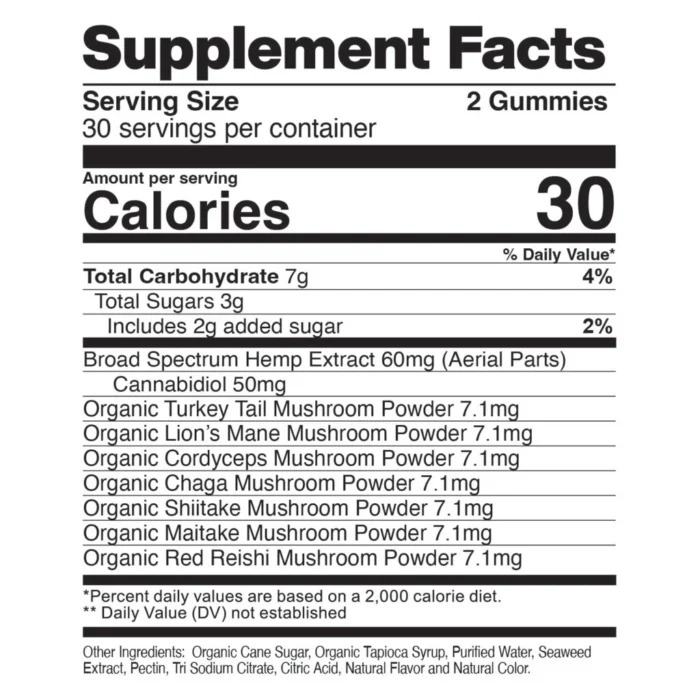 Our CBD Gummies With Mushrooms for Wellness combine the calming wellness benefits of CBD with the adaptogenic and nootropic properties of cordyceps, chaga, turkey tail, lion’s mane, and other mushrooms (50mg per serving!). Available in a delicious black cherry flavor, these health-boosting gummies are great for daily wellness. CBD Wellness Mushroom Gummies are a healthy and tasty way to start your day!